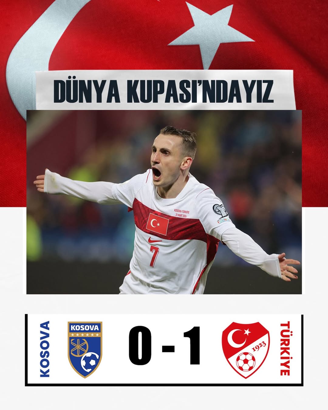 BU GURUR HEPİMİZİN! TEBRİKLER TÜRKİYE! 🇹🇷 2026 DÜNYA KUPASI’NDAYIZ! Kosova’yı mağlup ederek adımızı Dünya Kupası’na yazdırıyoruz. Milli Takımımızı yürekten tebrik ediyoruz! 💪🏻