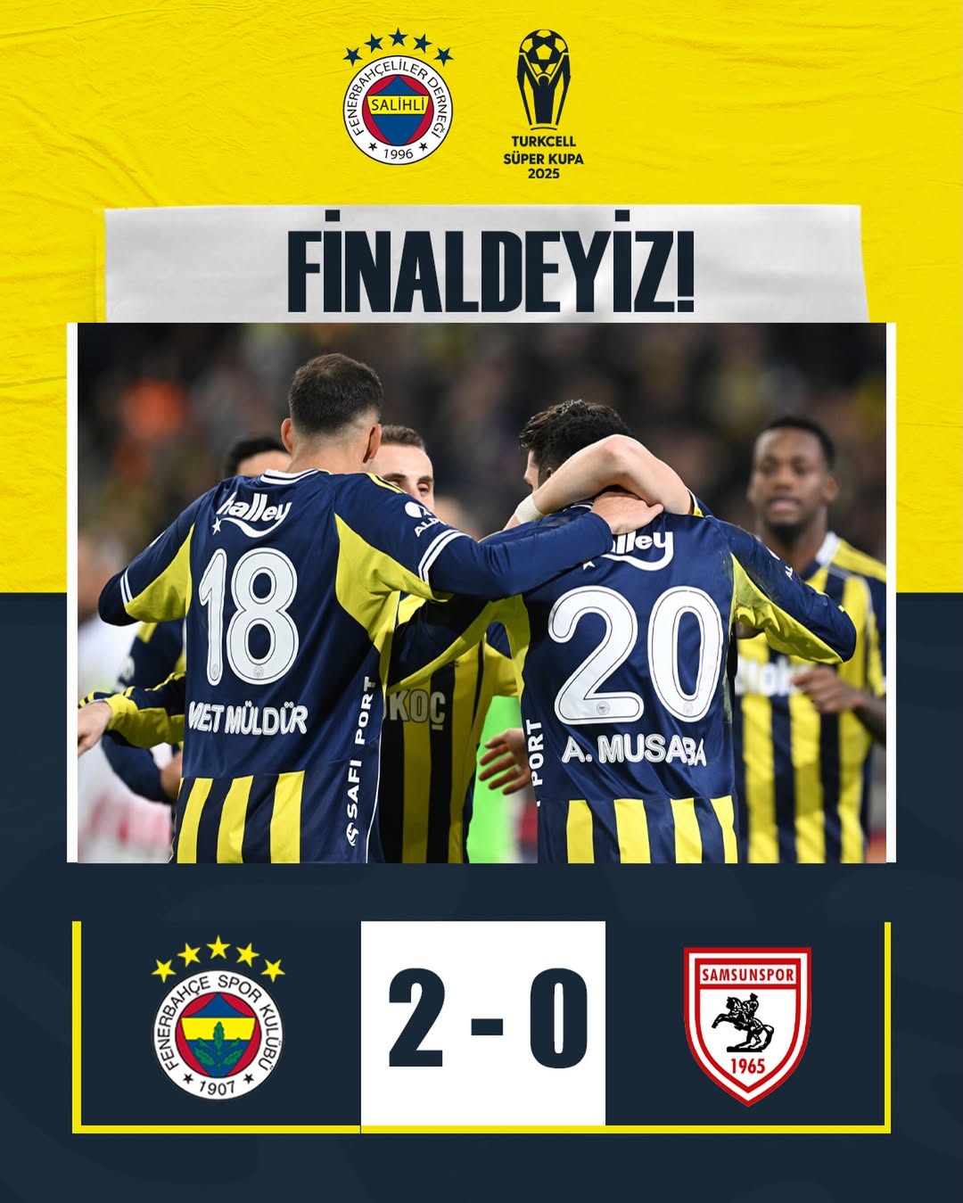 SÜPER KUPA’DA FİNALDEYİZ! 💪💛💙 Samsunspor’u 2–0 mağlup ediyor, adımızı finale yazdırıyoruz!